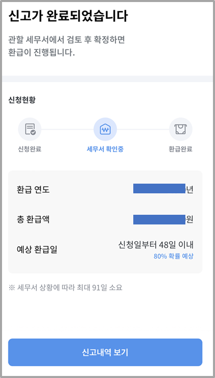 저는 그냥 신청했습니다. 환급금이 그렇게 크지도 않았고 세무서나 홈택스를 찾아가기가 번거로웠기 때문입니다. 10%라고해도 적당히 감안할 수 있는 수준이어서 진행을 하게 되었습니다. 아직 심사중에 걸려 있으며 최대 3개월이 걸린다니 느긋하게 기다려야겠습니다.