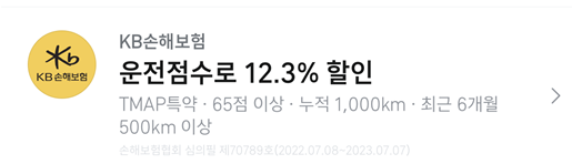 - KB 손해 보험 -------------------12.3% 할인 / 70-100점 이상 ( 65-69점 : 3% 할인)