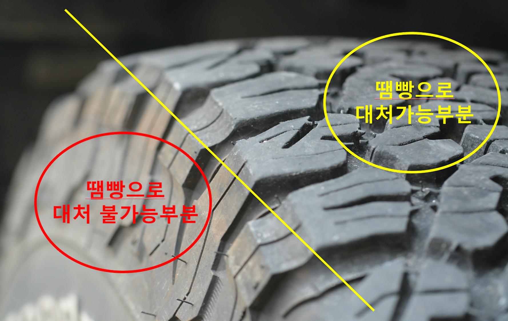 타이어는 위치에 따라 수리 가능 여부가 나뉩니다.