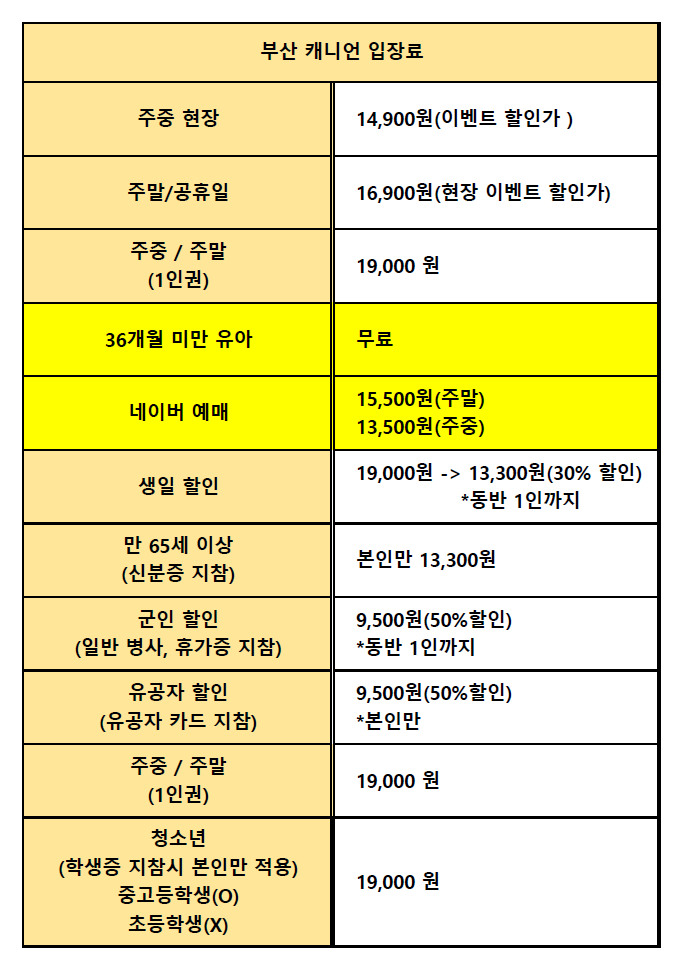 [캐니언 파크 부산 입장료]