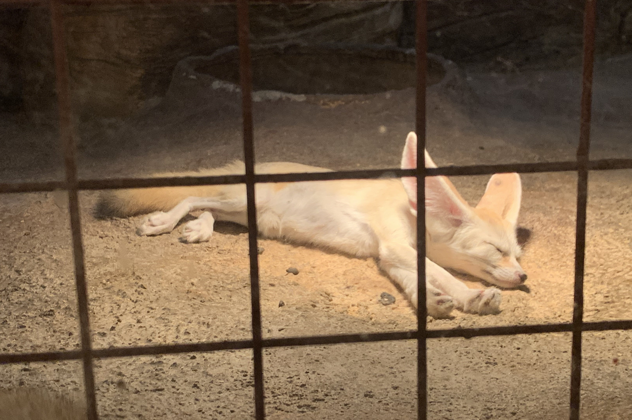 사막여우도 자고 있었습니다. 저렇게 밝은 부분이 따뜻하게 해주는 전구인가 봅니다. 동물들이 밝은 부분에서 잘 자고 있더라구요.