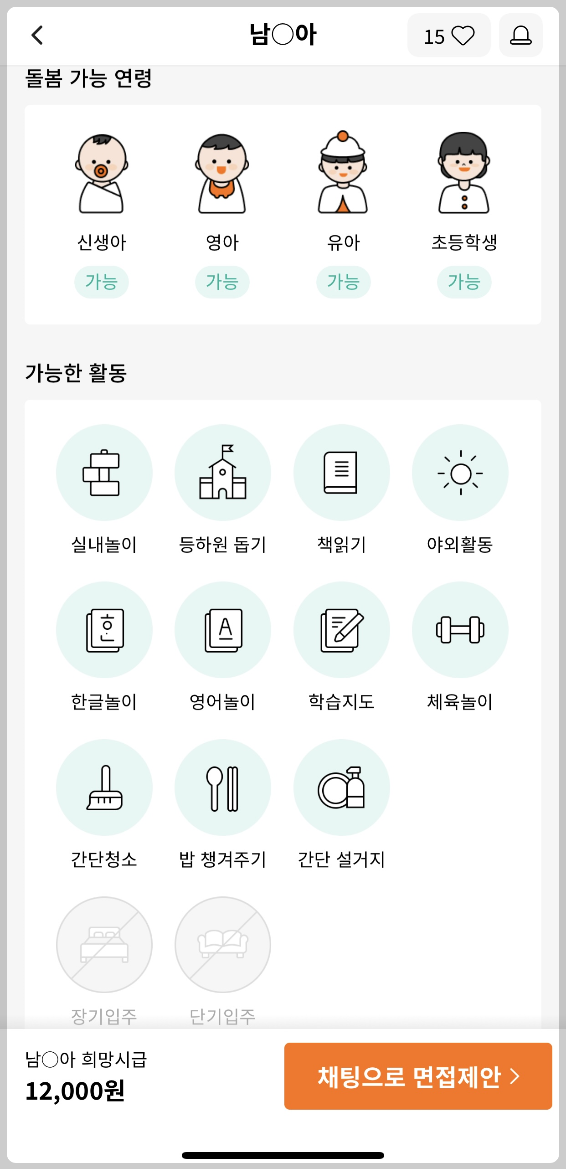 - 또한 돌봄 가능한 연령과 어떤 업무를 도와 줄 수 있는지 확인이 쉽습니다.
