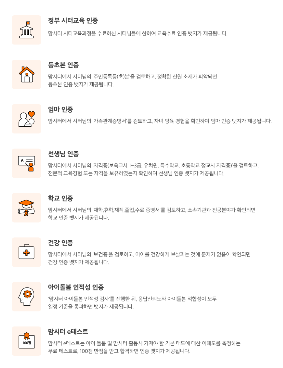 - 만 19세 이상의 내국인만 맘시터로 활동이 가능하며, 모두 본인인증으로 주민등록번호가 확인된 안전한 분들이 베이비 시터로 활동을 합니다.