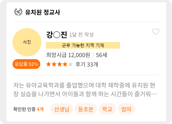 이렇게 직접 구하는 경우는 자신에게 맞는 시터분을 구하기 위해 어느 정도 발품을 팔 필요가 있어 보입니다.