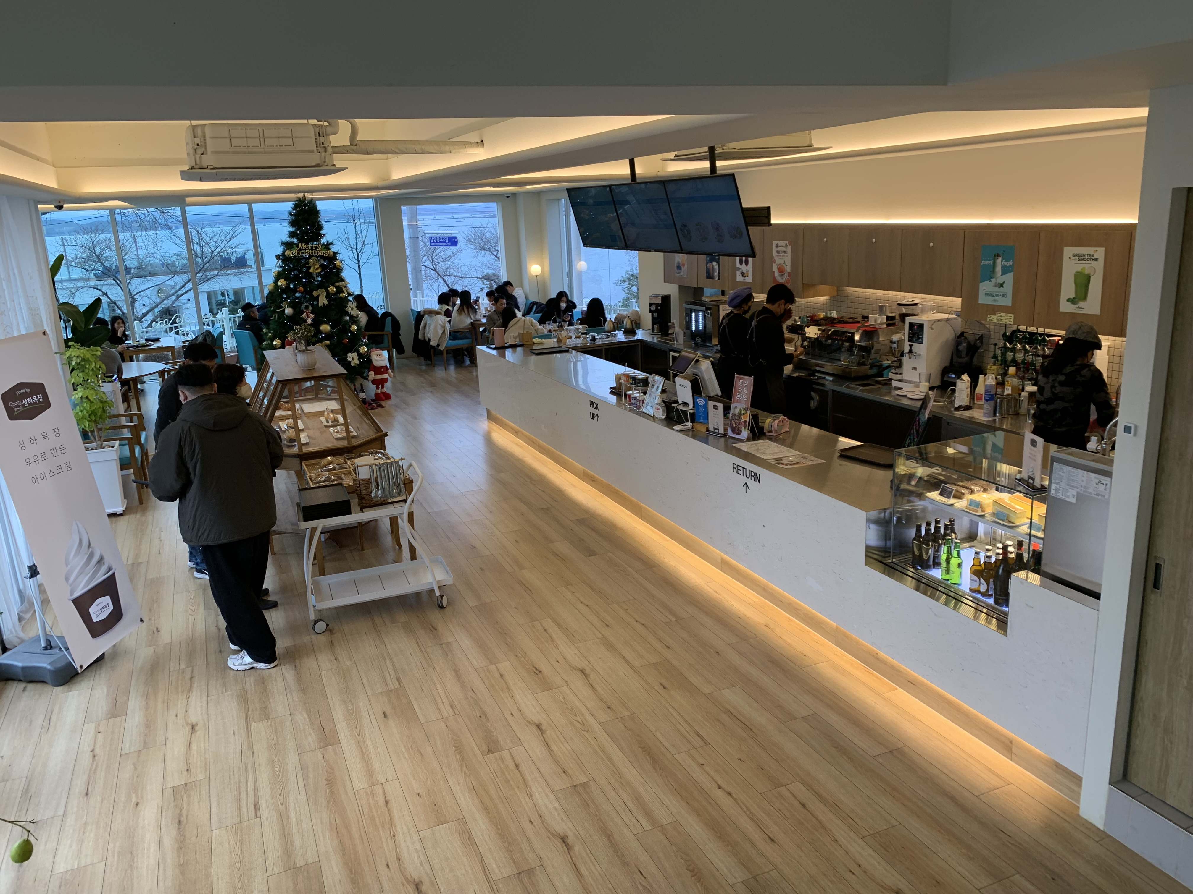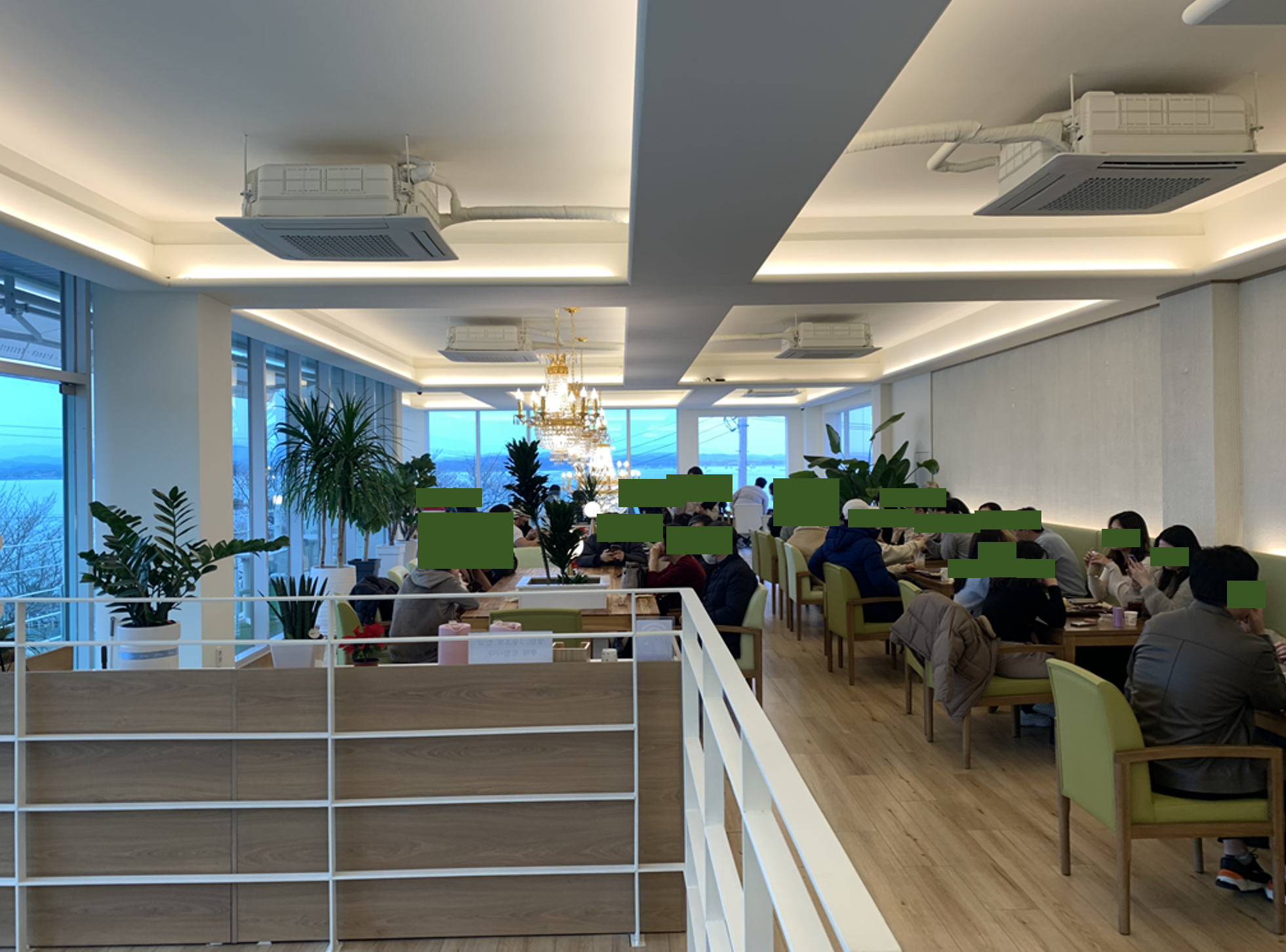 가족끼리 사천에 있는 카페 아슬란 송포를 다녀왔습니다. 인원수가 11명이었는데 마침 저희가 모두 앉을 수 있는 테이블이 있었습니다.
