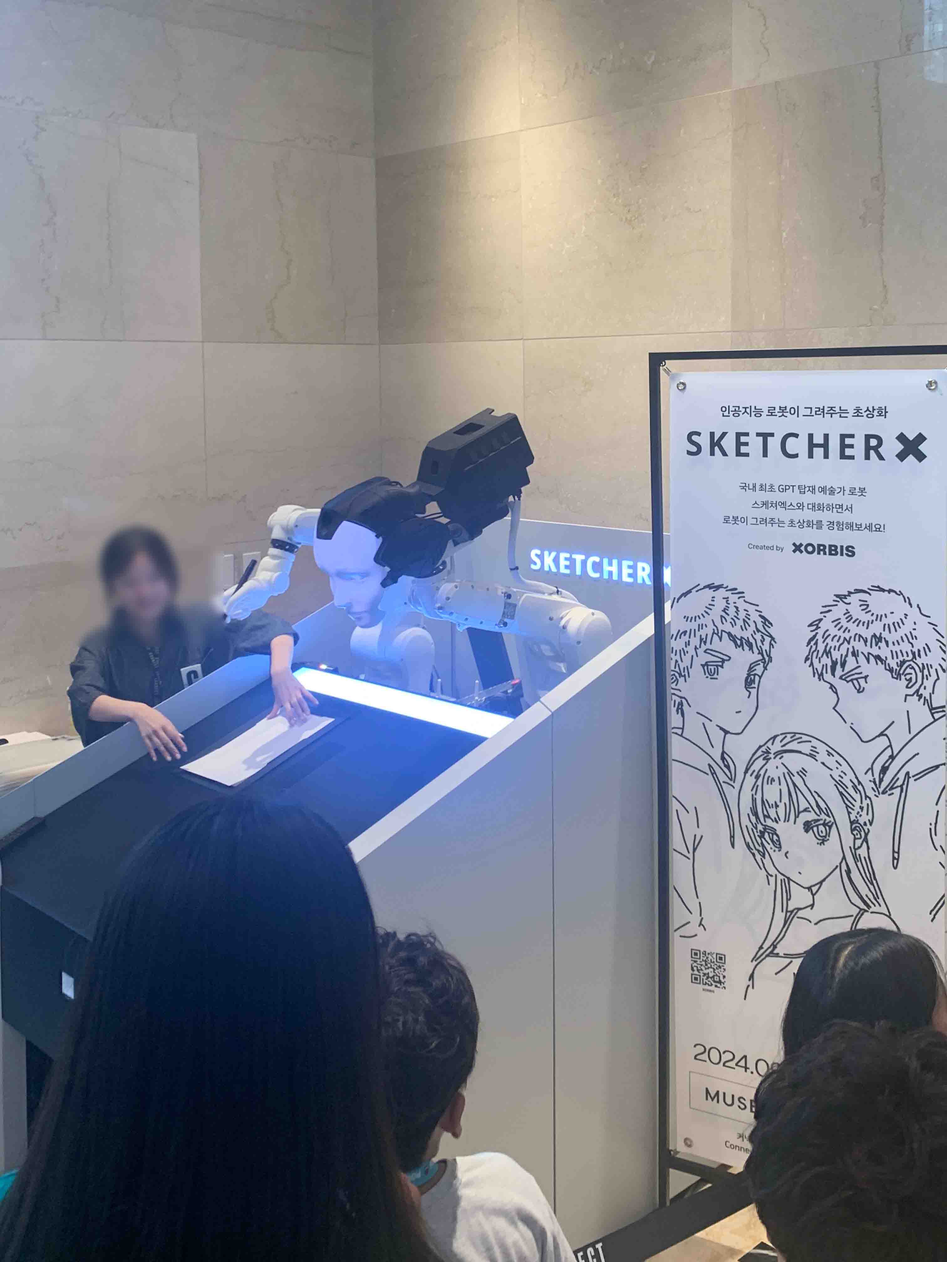 부산 현대 백화점 1층 정문 왼쪽으로 가시면 AI 로봇이 초상화를 그려줍니다. 저는 대기가 길어 해보지는 못했습니다.