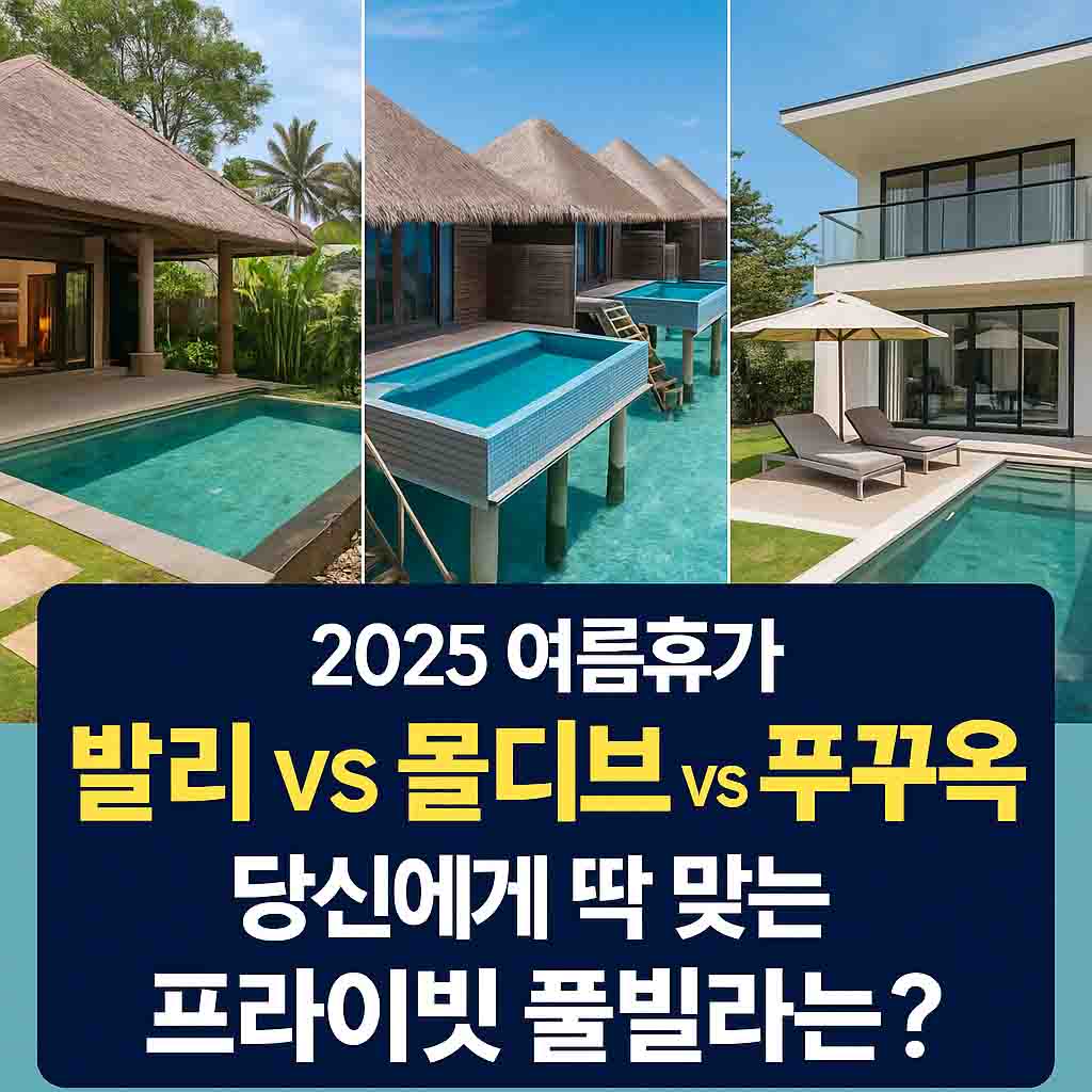 2025 여름휴가, 발리·몰디브·푸꾸옥의 프라이빗 풀빌라 완벽 비교! 허니문부터 가족여행까지 여행 스타일과 예산별로 추천하는 풀빌라 정보. 몰디브 럭셔리 수상빌라, 발리 정글뷰 풀빌라, 푸꾸