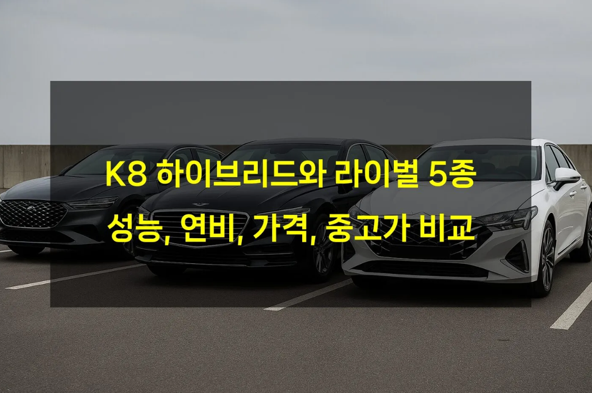 K8 하이브리드 vs 그랜저, 캠리, 어코드, G80, SM6까지! 연비, 성능, 가격, 상품성을 전방위로 비교해봤습니다. 가성비 최강 중대형 하이브리드 세단은 무엇일까요? 중고차 선택에 앞서 꼭 알아야 할