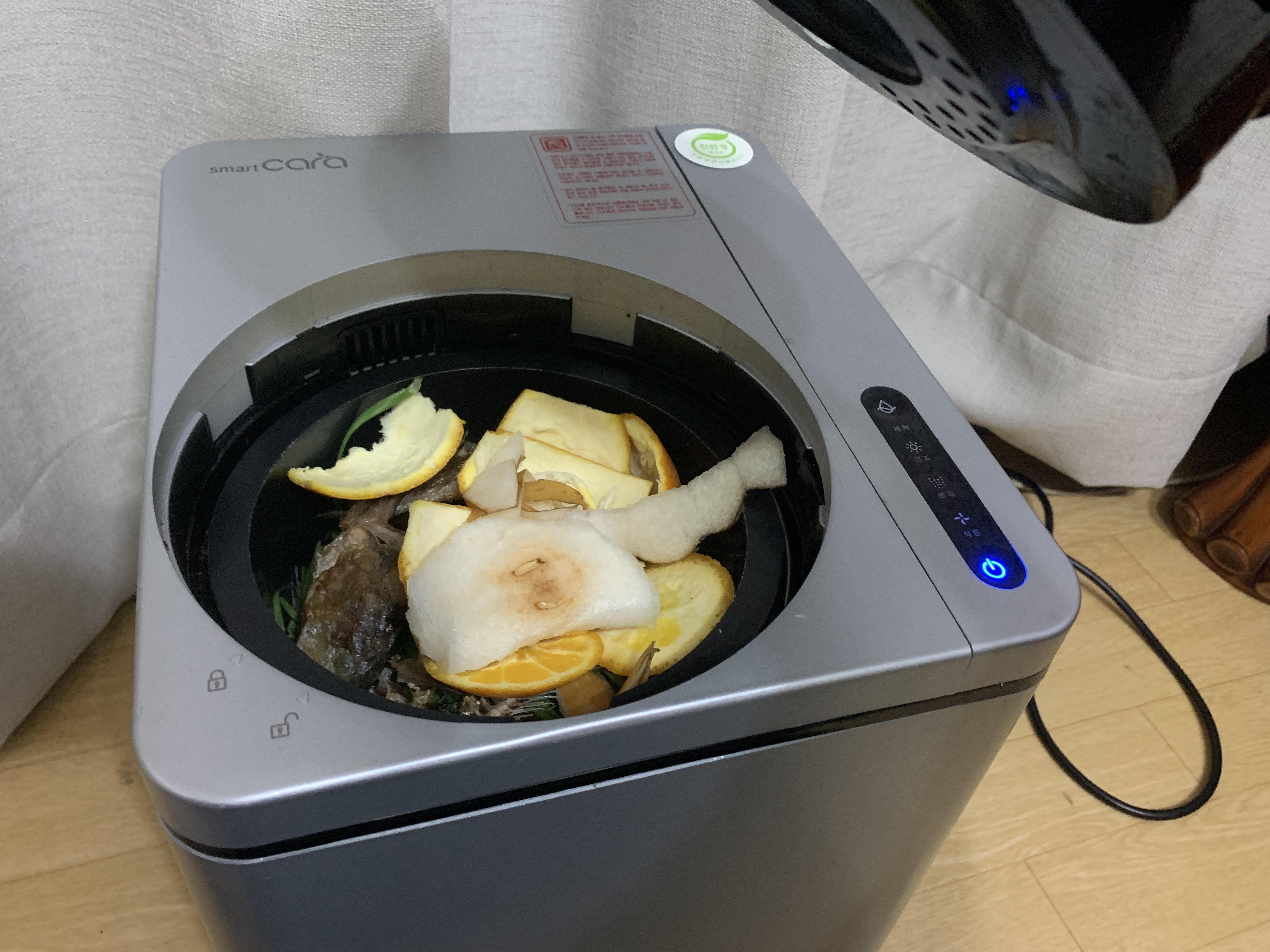 그래서 스마트 카라를 처분하고 현재는 아파트에 마련된 음식물 쓰레기 처리 시스템을 활용중입니다. 아파트에서도 음식물 쓰레기 처리소 관리를 깨끗하게 해줘서 불쾌스럽지도 않습니다.